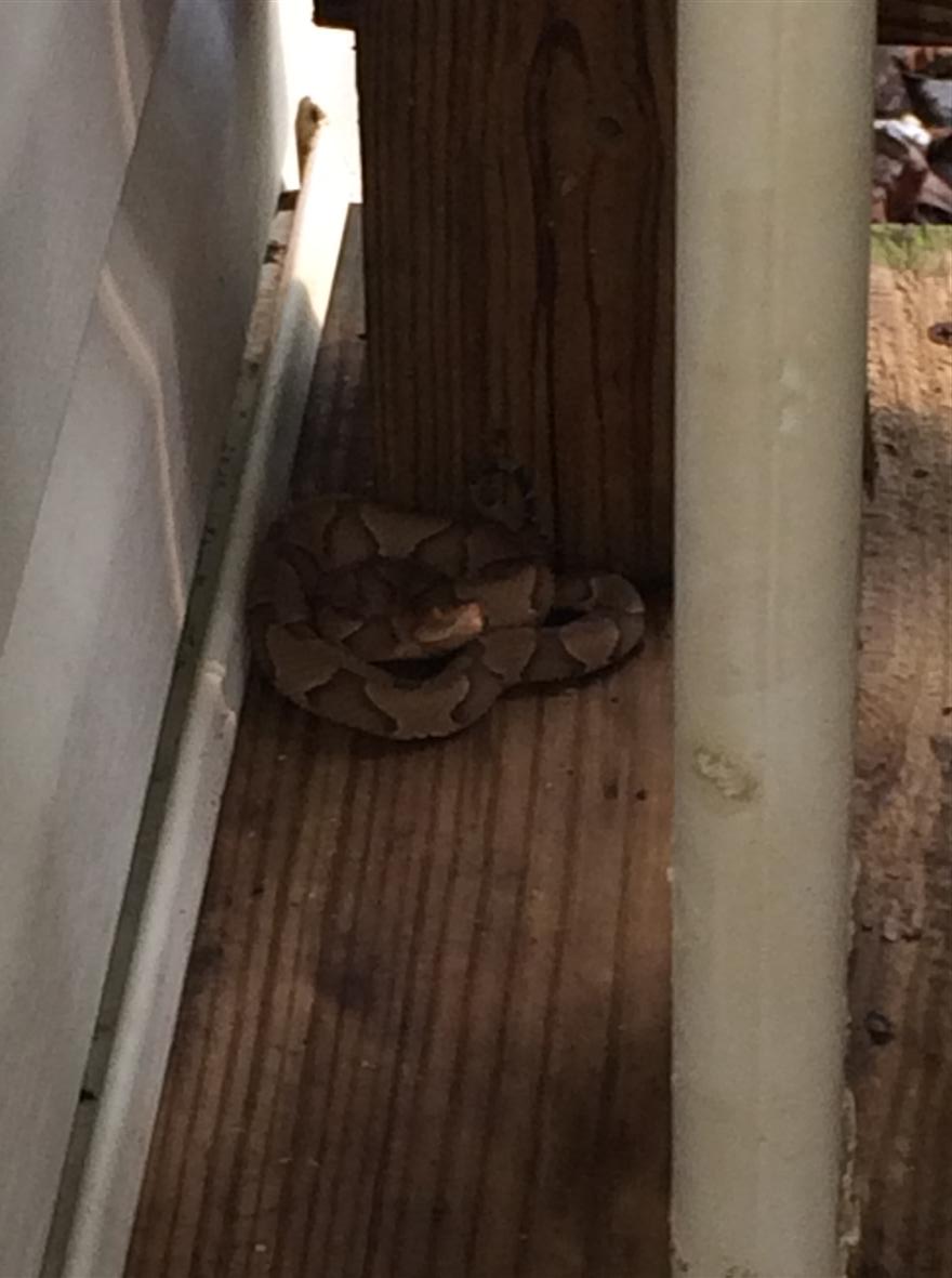 Oh yeah—forgot the dodging snakes bit. No, not the eggs, those were black snake eggs. I meant the copperhead that greeted my husband on the deck this morning when he reached for a can of bug spray: