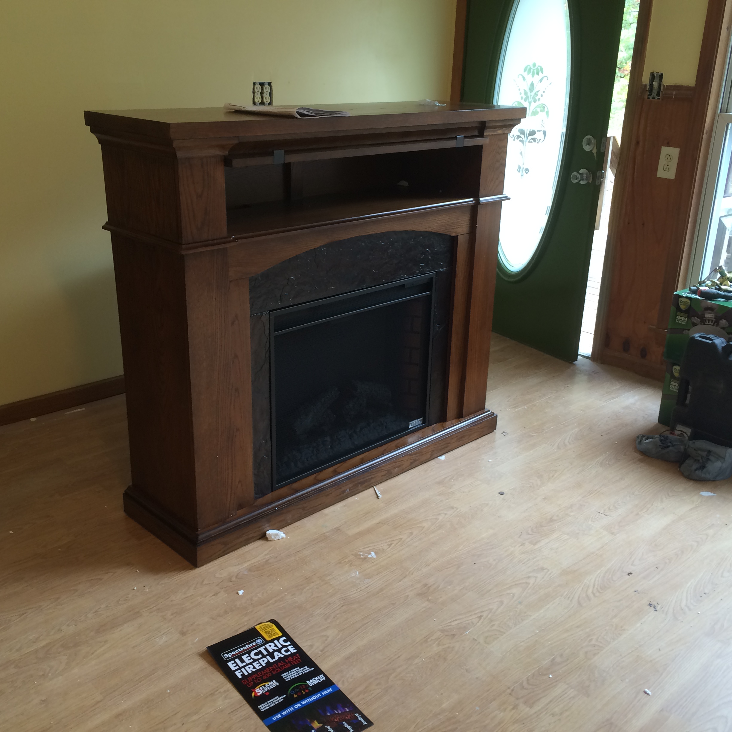 We started off on Friday with the unloading of the fireplace. There were at least eight boxes inside a larger box, also filled with Styrofoam.