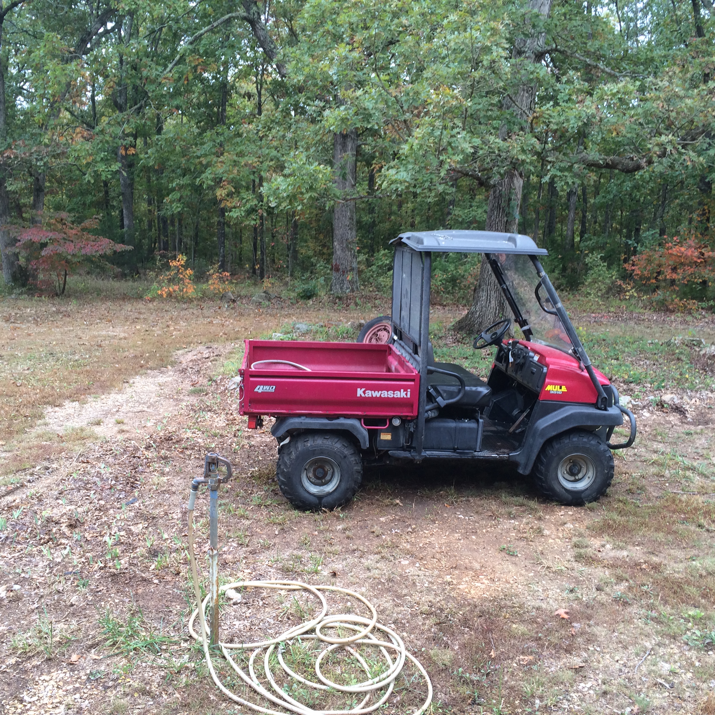 I didn’t get too many pictures after that, because we pulled out and dumped about five Mule-loads of junk and trash while the guys were brush-hogging and tree-trimming—you know, how guys do it, with one on the tractor and one in the bucket. Sheesh.