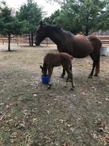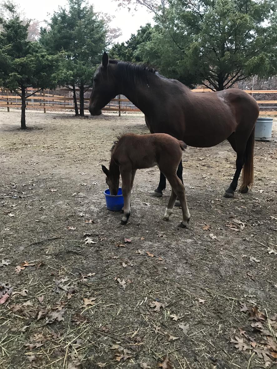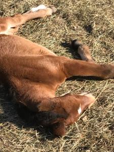 At birth, she was 8hh, or 32 inches, which is about 5 inches smaller than an “average” size foal. I’m still trying to measure for weight, but I’m guessing that now she’s maybe 85 pounds, so around 80 at birth.
