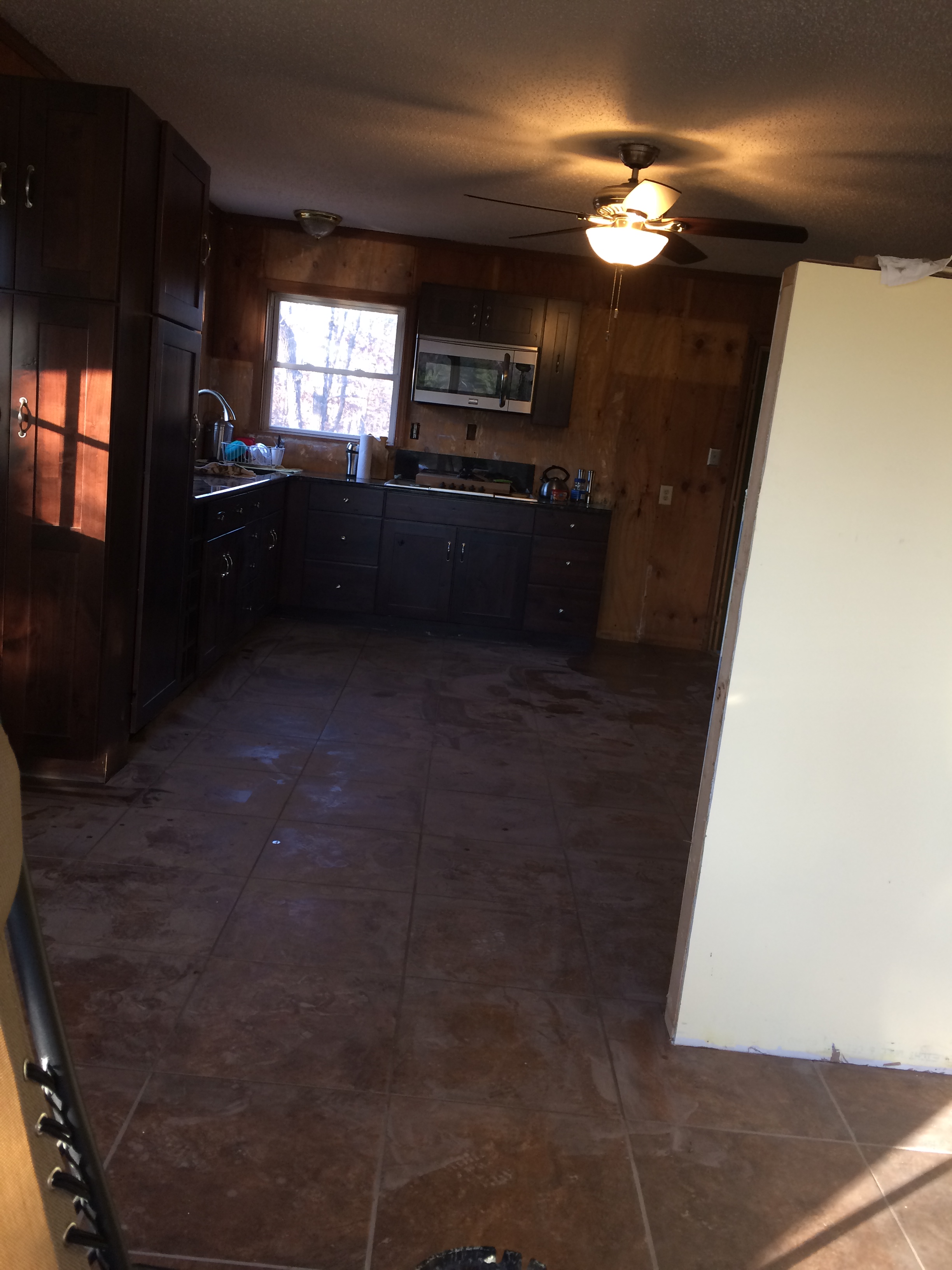 We’re not taking any chances, not with new tile and cabinets all over the place.