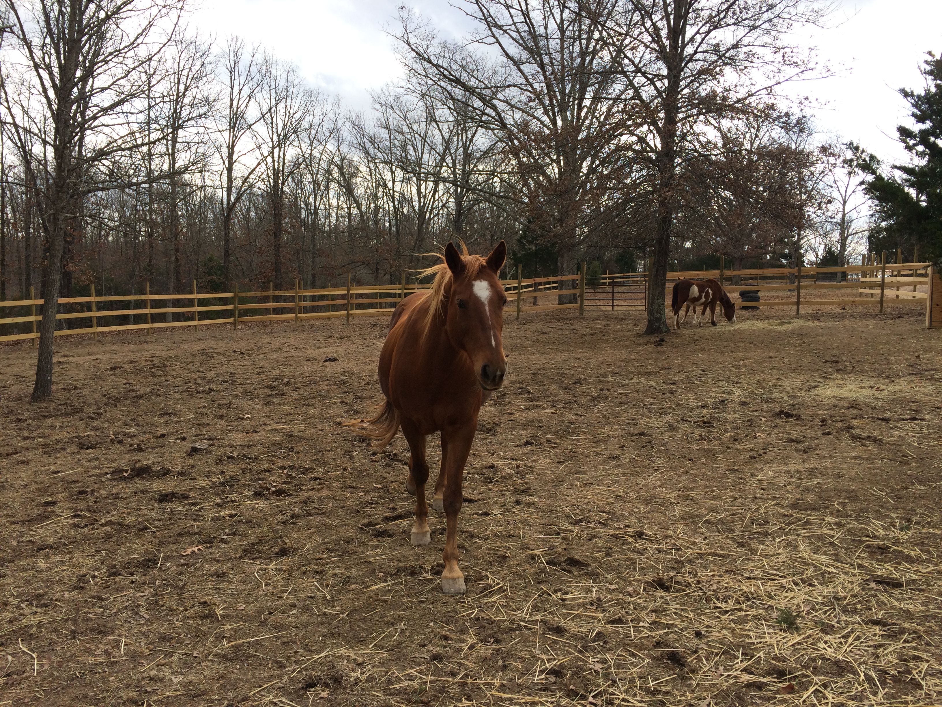 Here’s the biggest difference in personality/trust: I opened the gate just a little this morning, so Chestnut wouldn’t come through. Cav came right on in and started grazing. Cody stopped short and looked at me, ears up, waiting. I opened it a bit more and moved back as far as I could, about an arm’s length so I could hold the gate, and she trotted on through. Silly horse.