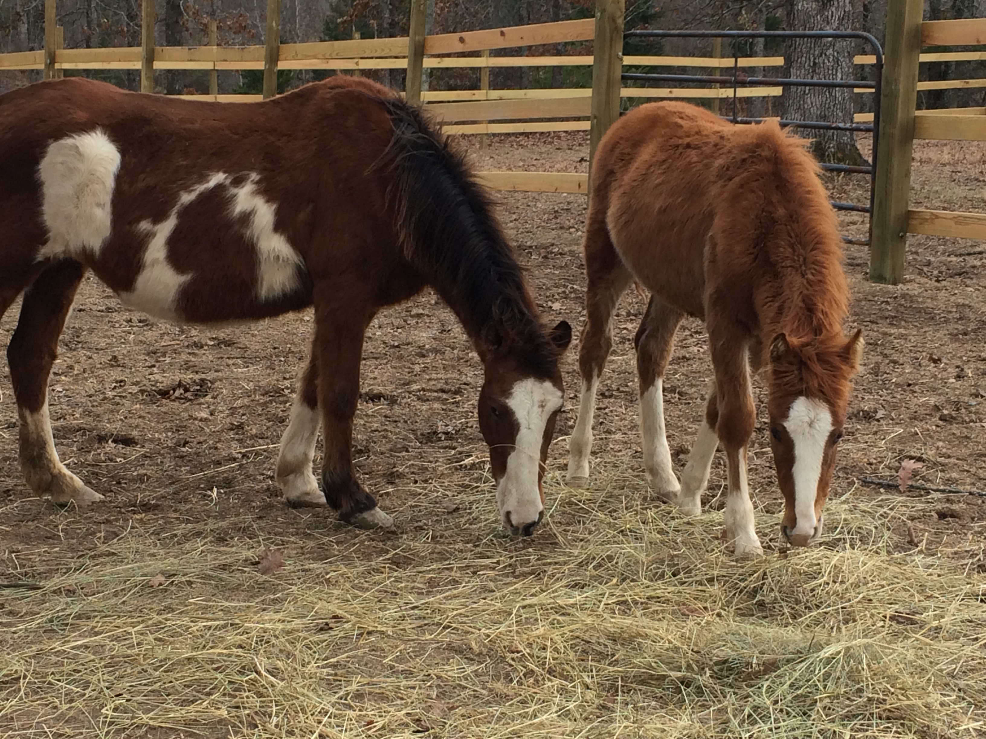 I’m increasing their grain, too, a little at a time each day. Cav is halfway to his full ration, but Cody is a bit behind. Slow and easy is much better than overfeeding, especially for horses who’ve never had grain before. Having a third arm would help! That way I could put her bucket down and hold Cav’s AND keep him from wandering away to the unattended bucket . . .