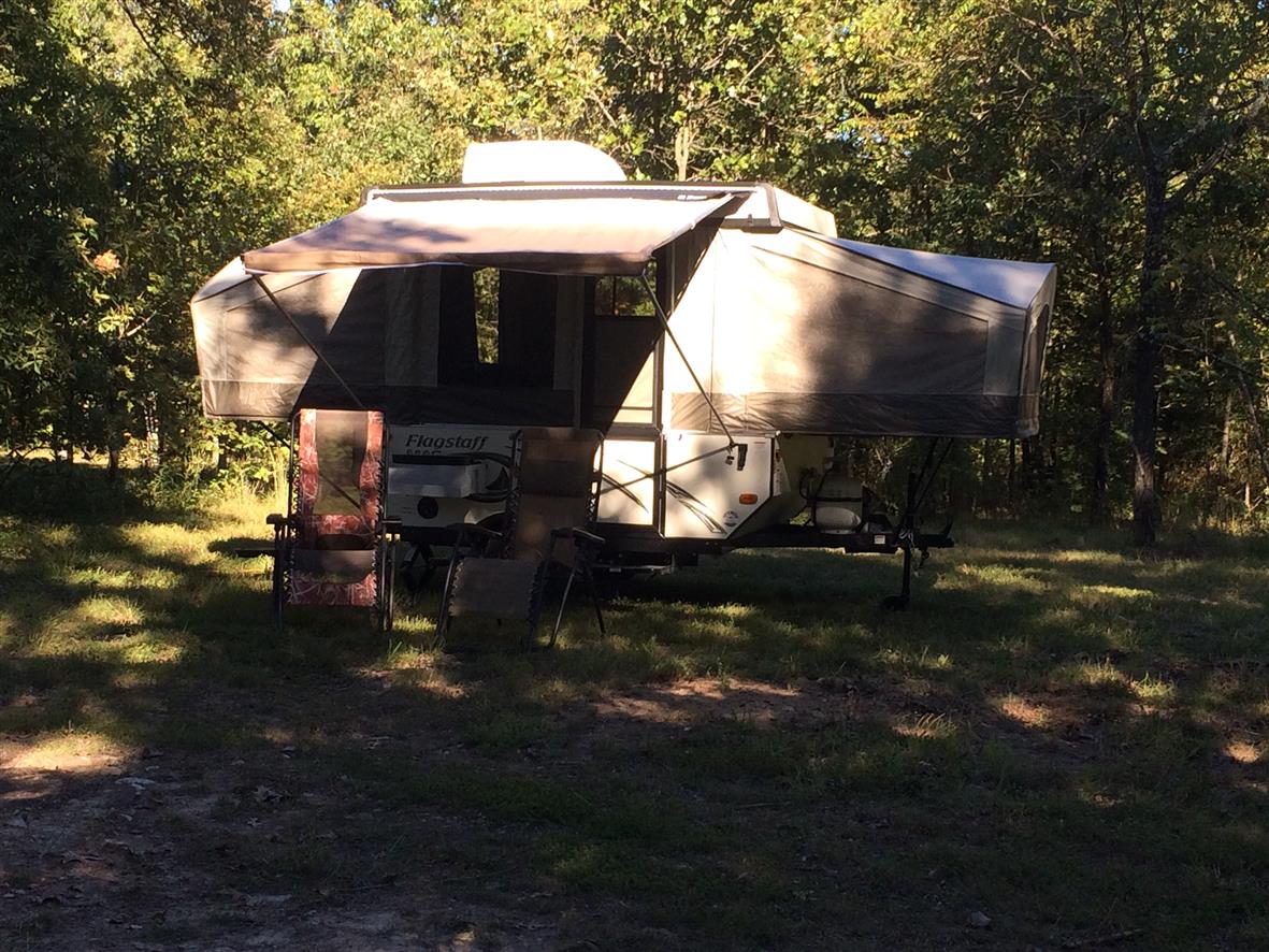 And you don’t raise it with one those old cranks, the modern tent camper has a switch. Thank goodness. Takes a lot of turning to lower the jacks on the back end as it is.